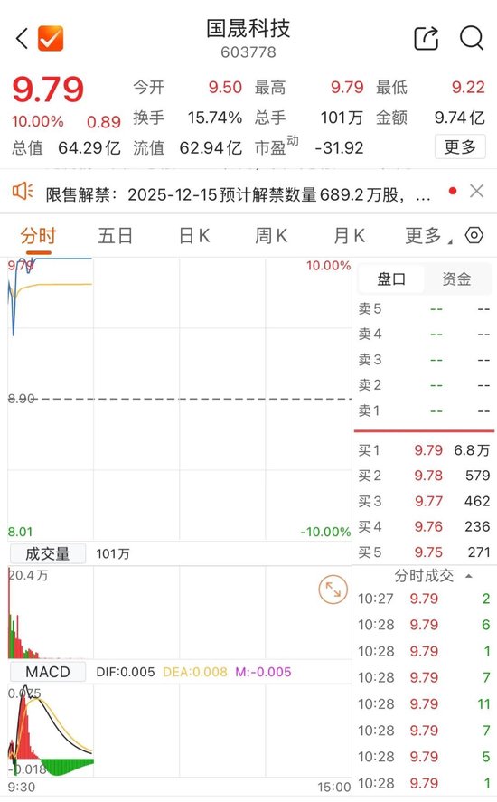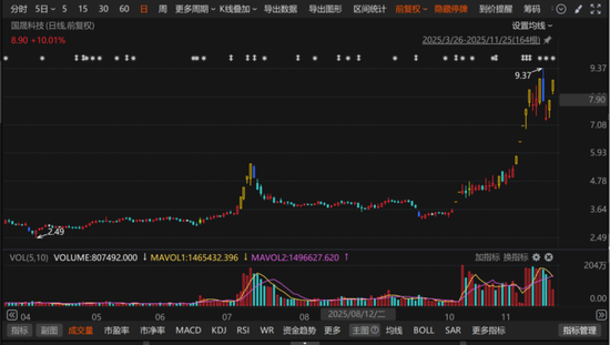 11月26日早盘,国晟科技盘中直线拉升,收尾发稿再次成绩涨停。